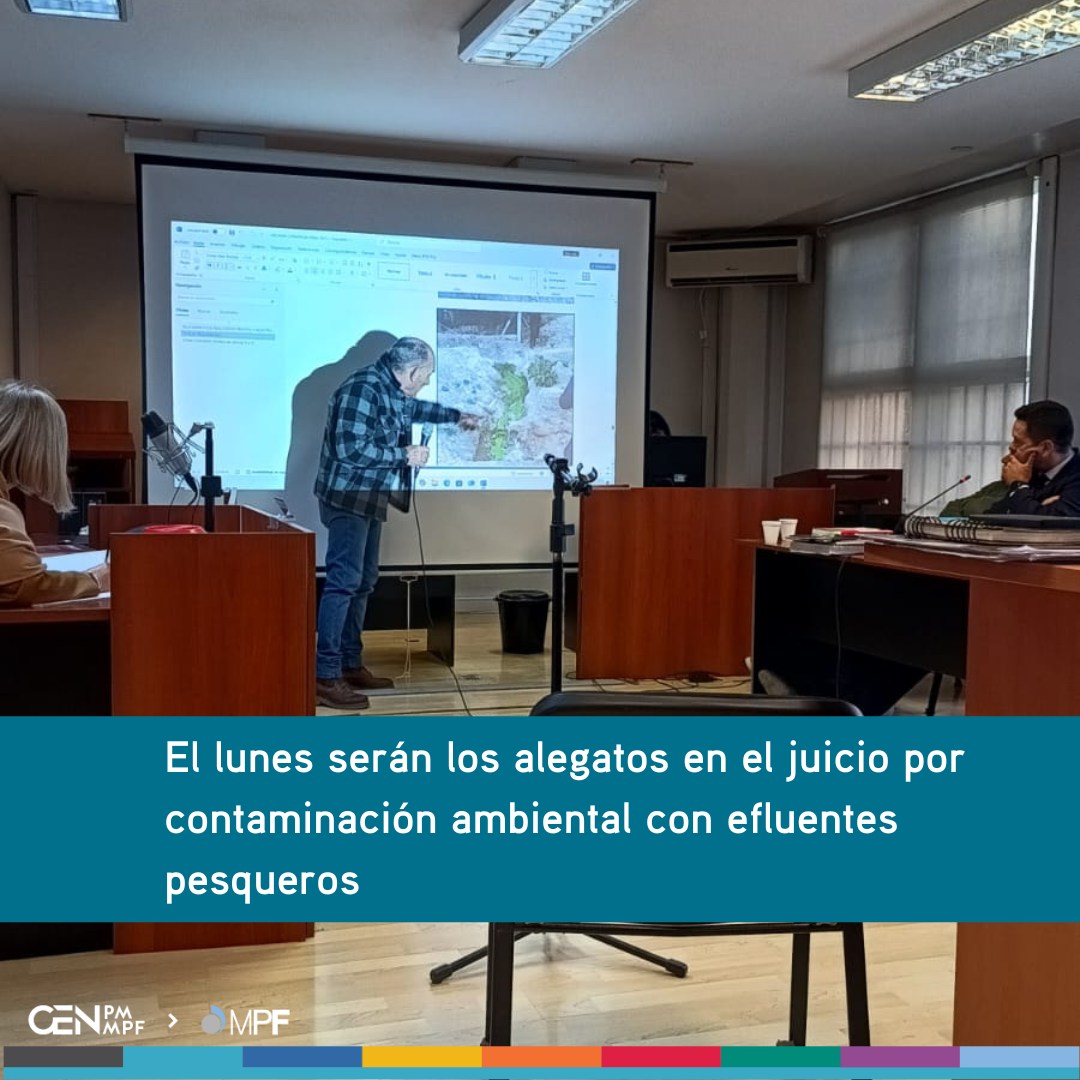 Contaminación ambiental: La Fiscalía pidió condena de efectivo cumplimiento El Ministerio Público Fiscal sostuvo en sus alegatos que se dicte condena contra Nadine Parry, responsable ambiental, y Yosef Vargas, jefe de planta de efluentes de Conarpesa, por el volcado al mar líquidos crudos sin tratamiento provenientes del procesamiento de langostino. (más…)