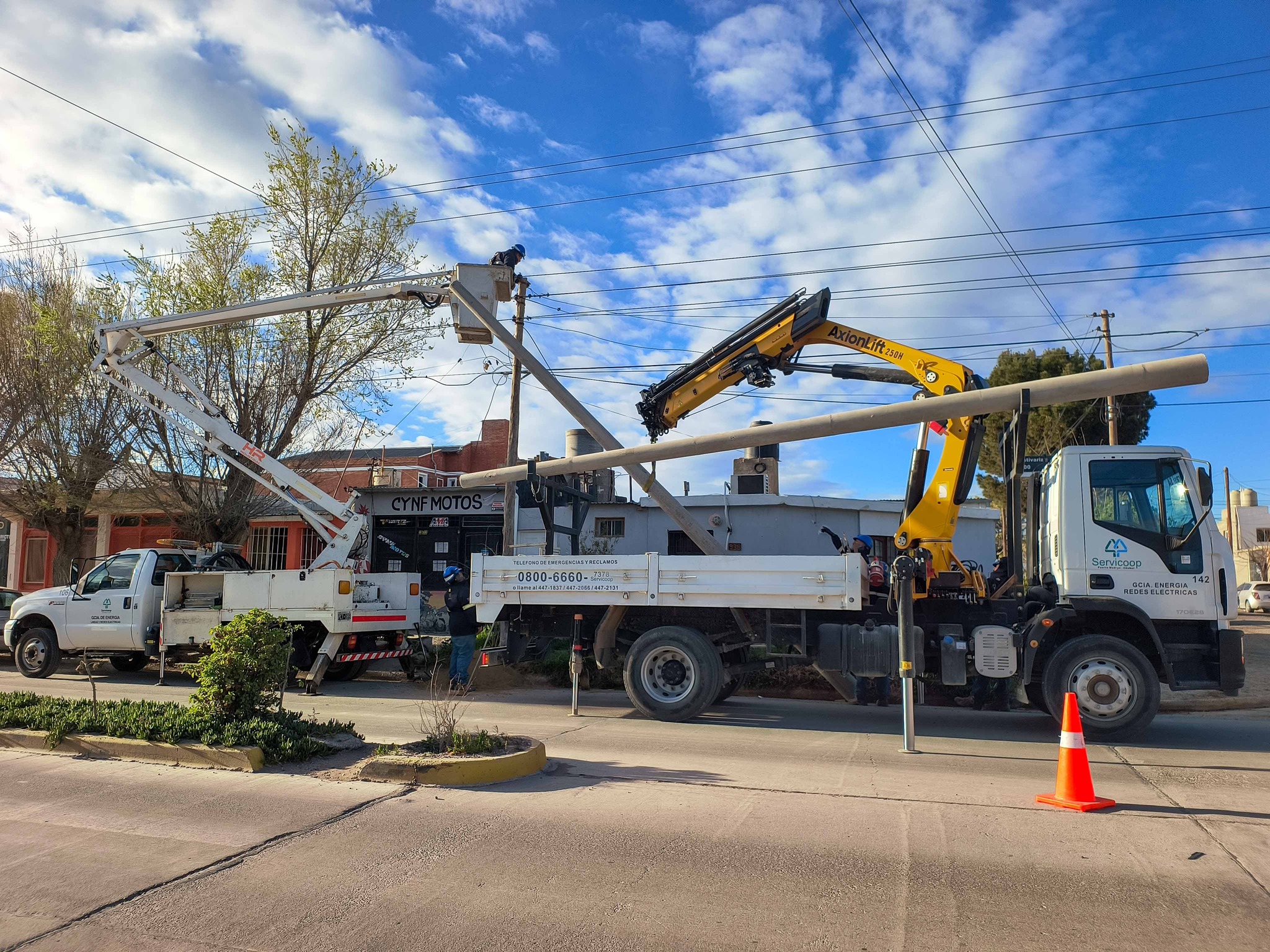 Servicoop implementa el plan de modernización del tendido eléctrico, que contempla el montaje e instalación de nuevas columnas de hormigón, sobre puntos estratégicos del sistema de distribución de energía.