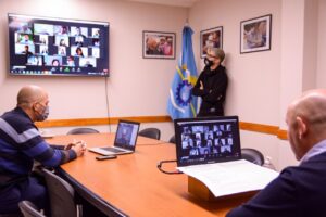 En la videoconferencia, el Intendente estuvo acompañado por el secretario de Educación, Cultura y Deportes, Diego González; el subsecretario de Deportes, Gustavo Di Módica, y la presidenta de la FFEMAR, Susana Treidel. También se hicieron presentes miembros de la Comisión Directiva de la FFEMAR y delegadas de las distintas regiones.